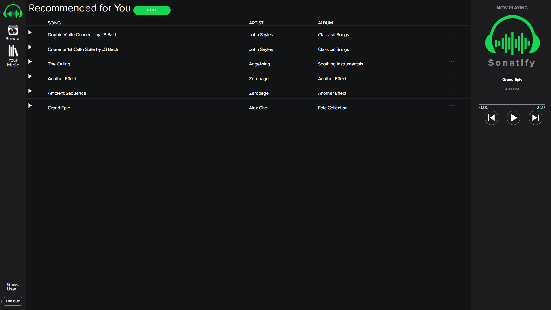 An elegant music web app inspired by Spotify that allows you to listen to music while managing your playlists seamlessly. Built with Ruby on Rails and JavaScript with Redux.